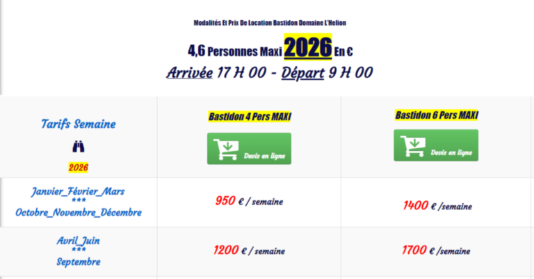 Le Domaine de L'Helion se compose d'une Bastide pour 7 personnes, une Annexe pour 4 personnes. Possibilité jusquà 5 Chambres.
